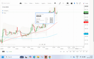 Price witnessed a sharp upside move toward ₹438–439 zone followed by rejection near upper levels, indicating supply presence.